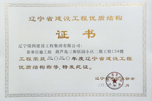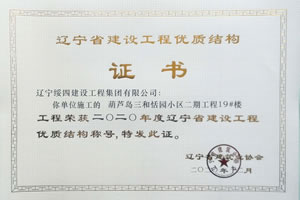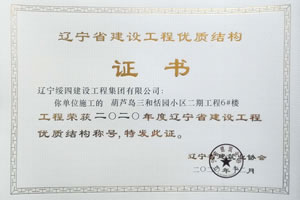 “葫蘆島三和恬園小區(qū)二期工程6#樓”榮獲2020年度遼寧省建設(shè)工程優(yōu)質(zhì)結(jié)構(gòu)稱號