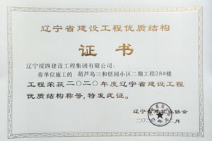 “葫蘆島三和恬園小區(qū)二期工程28#樓”榮獲2020年度遼寧省建設(shè)工程優(yōu)質(zhì)結(jié)構(gòu)稱號