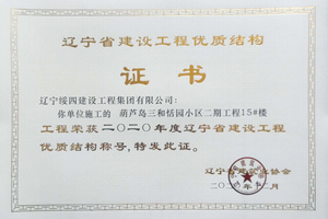 “葫蘆島三和恬園小區(qū)二期工程7#樓”榮獲2020年度遼寧省建設(shè)工程優(yōu)質(zhì)結(jié)構(gòu)稱號