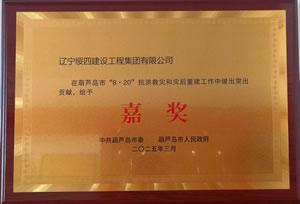 嘉獎:遼寧綏四建工集團在葫蘆島市“8·20”抗洪救災(zāi)和災(zāi)后重建工作中做出突出貢獻