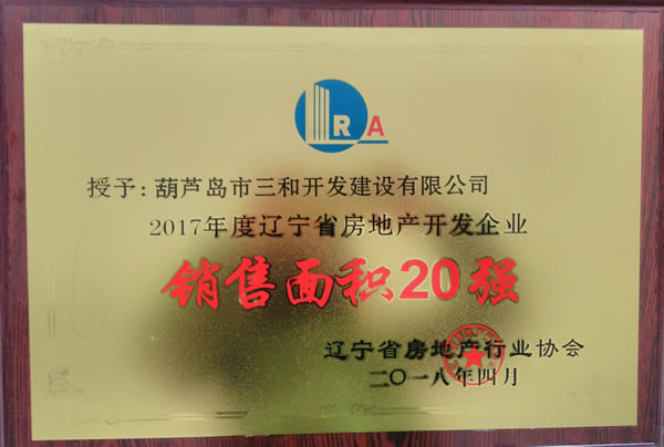 葫蘆島市三和開發(fā)建設有限公司榮獲“遼寧省房地產開發(fā)企業(yè)銷售面積20強”