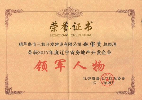 總經理趙寶貴獲得“遼寧省本土房地產開發(fā)企業(yè)領軍人物”殊榮。我公司會在十九大精神的指引下,踏上行業(yè)發(fā)展的新征程,促進遼寧省房地產行業(yè)在中國特色社會主義建設新的時代背景下繼往開來,健康發(fā)展,繼續(xù)展示遼寧省房地產行業(yè)的企業(yè)家精神和行業(yè)風采,樹立行業(yè)發(fā)展新標桿。