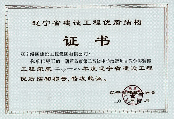 由企業(yè)自愿申報,有關(guān)單位擇優(yōu)推薦,遼寧省建筑業(yè)協(xié)會工程質(zhì)量管理分會組織專家組對工程復(fù)查并經(jīng)省建設(shè)工程質(zhì)量評審委員會審定,以及社會公示等一系列評價認(rèn)定。由我公司承建的“葫蘆島三和恬園13#樓”、“葫蘆島市第二高級中學(xué)改造項目教學(xué)實驗樓”工程被評為“2018年度遼寧省建設(shè)工程優(yōu)質(zhì)結(jié)構(gòu)”工程。