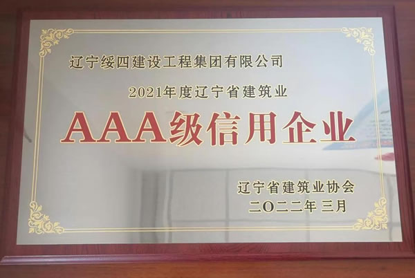 2022年3月,遼寧綏四建工集團(tuán)有限公司被遼寧省建筑業(yè)協(xié)會評為2021年度遼寧省建筑業(yè)AAA級信用企業(yè)。