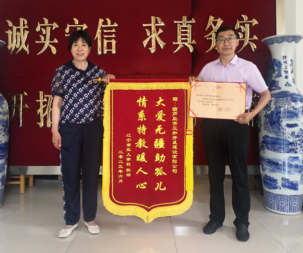 2023年6月,葫蘆島市三和開發(fā)建設(shè)有限公司捐贈十萬元給遼寧省孤兒學(xué)校,用于支持孤兒特教事業(yè)、改善孩子們的生活條件。