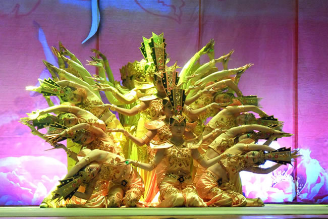 2016年8月7日,河北省石家莊恒愛殘疾人藝術團“凝聚恒愛心·實現(xiàn)中國夢”殘疾人專題文藝晚會在葫蘆島市CBD文化館舉行,上演了一場別樣的正能量“藝術盛宴”。我集團積極參與,出資贊助了此次演出,并組織數(shù)十人前去觀看,學習他們超凡的毅力和對生活的熱愛。 演出在大氣磅礴的聾啞人舞蹈《共筑中國夢》中拉開帷幕,男聲獨唱《中國人》、雜技《空竹》、器樂獨奏《苗嶺的早晨》、無臂口寫書法表演、舞蹈《千手觀音》等10余個豐富多彩的節(jié)目依次上演。其中,無臂口寫書法家郎文東以口代筆書寫的“厚德載物”,其剛勁大氣的書法,讓觀眾驚嘆不已。壓軸登臺的《千手觀音》則將整場演出推向了高潮,聾啞演員們用變幻莫測的手姿,劃出一道道優(yōu)美的金色弧線,給人以視覺的享受和心靈的震撼。