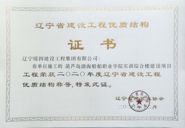 “葫蘆島渤海船舶職業(yè)學院實訓綜合樓建設項目”榮獲2020年度遼寧省建設工程優(yōu)質結構稱號