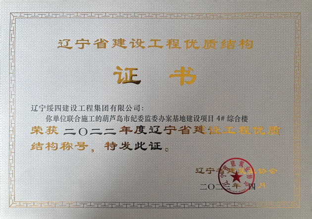 葫蘆島市紀(jì)委監(jiān)委辦案基地建設(shè)項(xiàng)目 4# 綜合樓榮獲 2022年度遼寧省建設(shè)工程優(yōu)質(zhì)結(jié)構(gòu)稱號